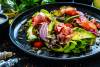 Kolacja - Sałatka z szynką dojrzewającą, pomidorkami koktailowymi, avocado i zielonymi warzywami